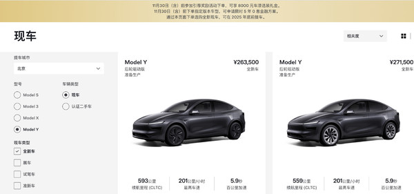 此次调整意味着部分近期下单的用户可能无法在2025年年内完成提车。为满足急迫用车需求,特斯拉引导消费者使用其官网“现车工具”选购已有库存车辆。