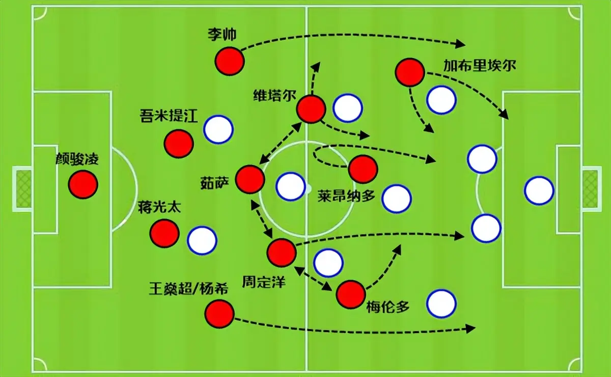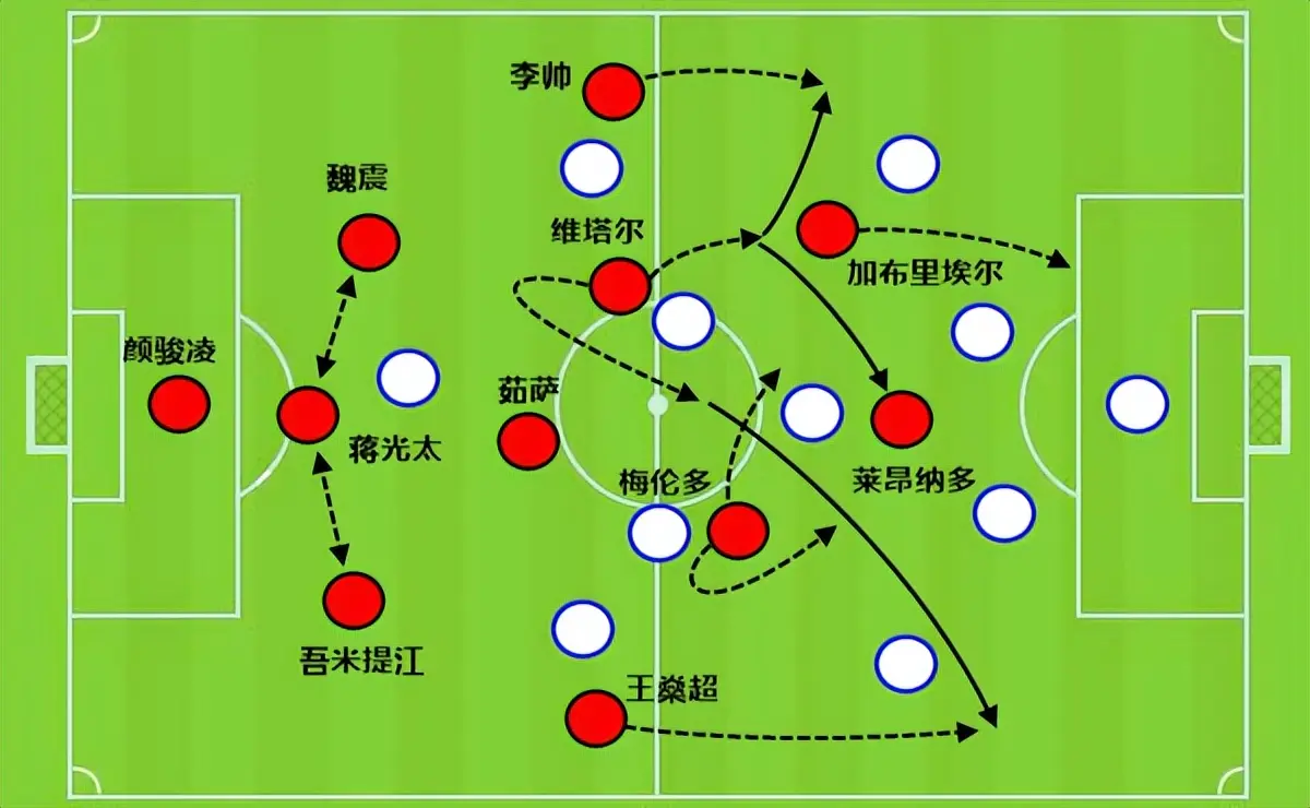 因为对手看到上海海港外援维塔尔和梅伦多中路能控球,就必须收紧队形才能不让你中路撞墙打穿或者直接直塞给莱昂纳多和加布里埃尔进球,于是两翼就会自然放空。